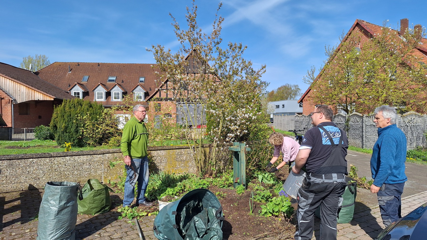 Obwohl viele bestimmt auch genug im eigenen Garten oder Haus zu tun haben, haben sich wieder fleißige Helfer zu einem Arbeitseinsatz getroffen. Schwerpunkt war der Maibaumplatz und die gegenüberliegende Kurve. Hier wurde viel Unkraut entfernt und die kahlen Stellen mit Storchenschnabel bepflanzt. Nun hoffen wir, dass viel davon anwächst.